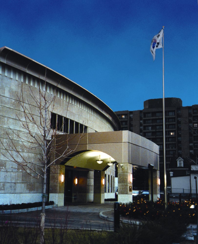 This dynamic Embassy building is located in a historic area of Ottawa, on a small site surrounded by residential property. The overriding design objective was to capture and project the energy and vision of the future, while reinforcing the character and unique attributes of the neighborhood. The building is necessarily set apart from its surroundings, with walls on three sides, but also fits in well, with an expansive, welcoming entry plaza, and an overall height and definition that is consistent with its locale.