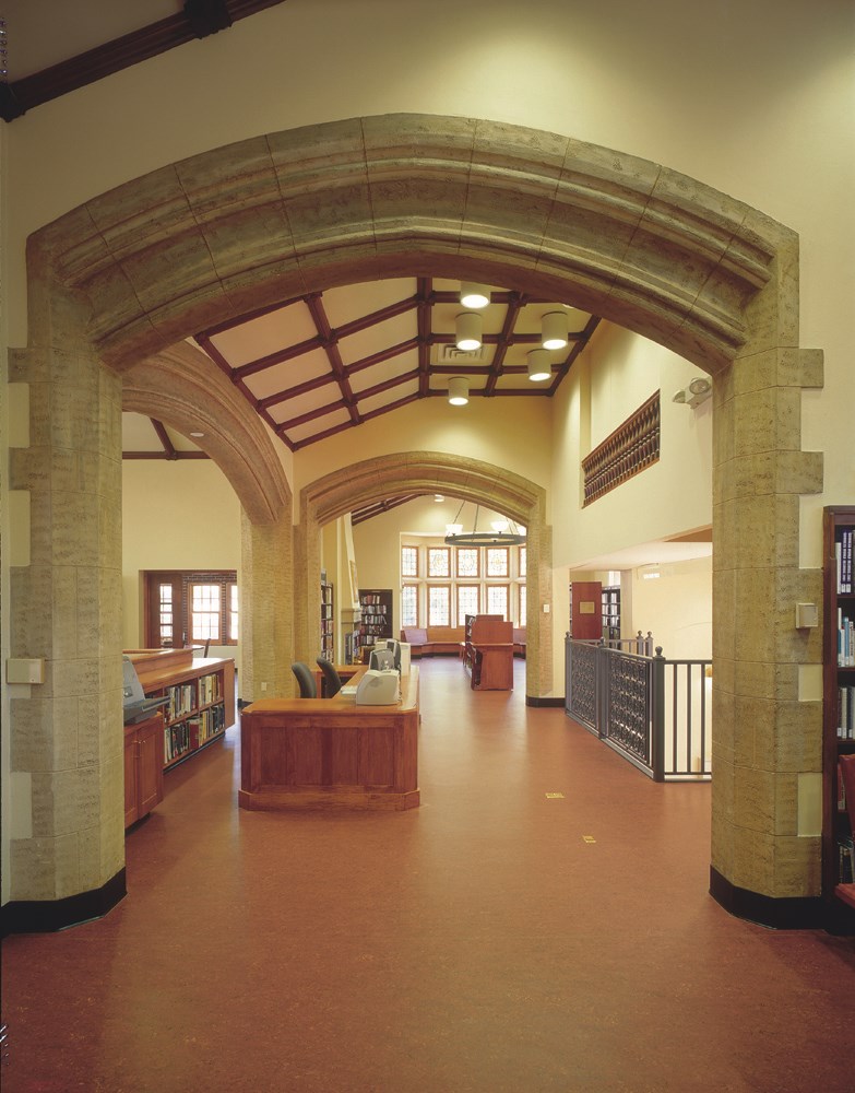 Originally built in 1931 and designed by the architect James Vanderbilt, the Library is a valued neighborhood institution. Improvements to this two-story landmark included ADA updates; new mechanical and electrical systems; careful renovation of historic features, and a 1,200 SF expansion at the new main level to provide staff workrooms, conference room, childrens story hour area and mechanical space. The design significantly improved the function of the building, while preserving the architectural integrity and historic character.