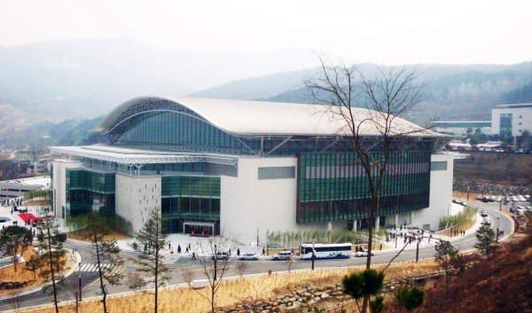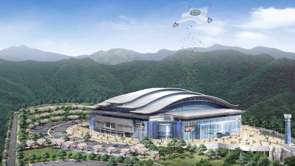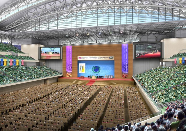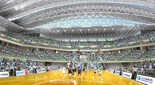 This 20,000 seat stadium is designed to serve as a sports facility as well as for worship and performance events. The building's importance is accentuated by its striking visual presence - featuring a gracefully curved roofline (which is both functional and aesthetic), an impressive glass and steel entrance, and an ascending tree-lined approach that ends in a spacious plaza dominated by a sparkling fountain and tower. Once inside, visitors are offered access to the various levels of the amphitheater via generous concourses. The open plan allows for clear visibility and easy movement.