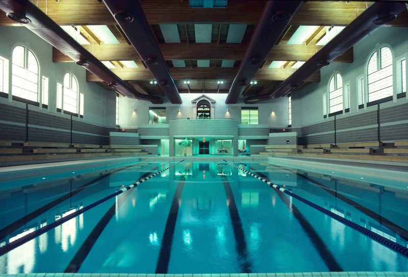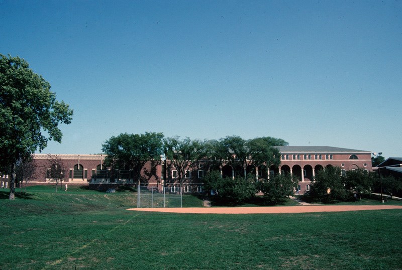 The classically simple design of the Leonard Natatorium at Macalester College in St. Paul, MN, is both contemporary and entirely compatible with the adjoining gymnasium. The exterior brick, tall arching windows, and geometric Moorish frieze all echo the Neo-Georgian architecture prevalent across the campus. The existing classical stone entrance serves both the new pool and the gymnasium. It opens onto a pool area that is suffused with natural light and features a rich palette of burgundy, terra cotta and beige plaster and ceramic tile, along with warm maple butcher block bleachers. The Leonard Natatorium won both an Honor Award from AIA Minnesota and a Citation Award from American School and University Magazine.