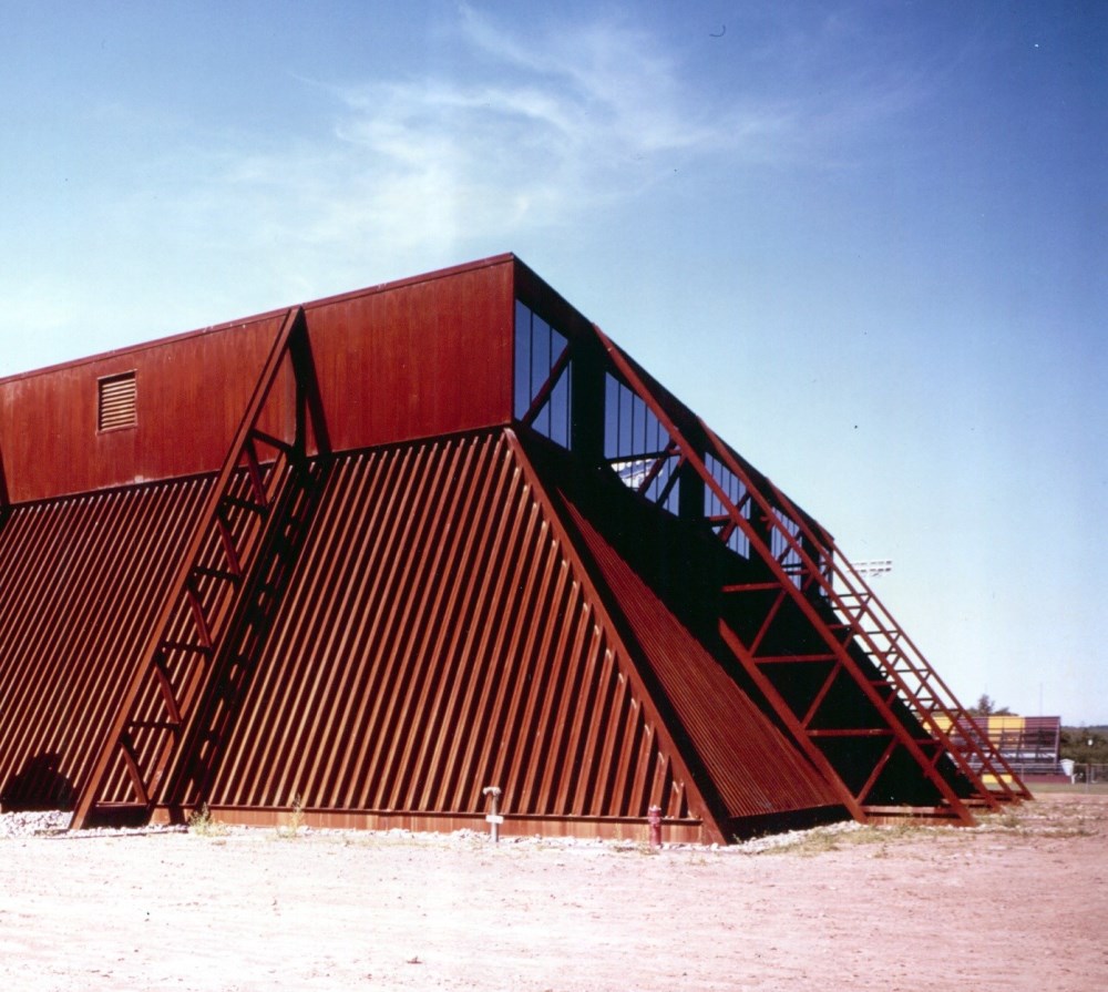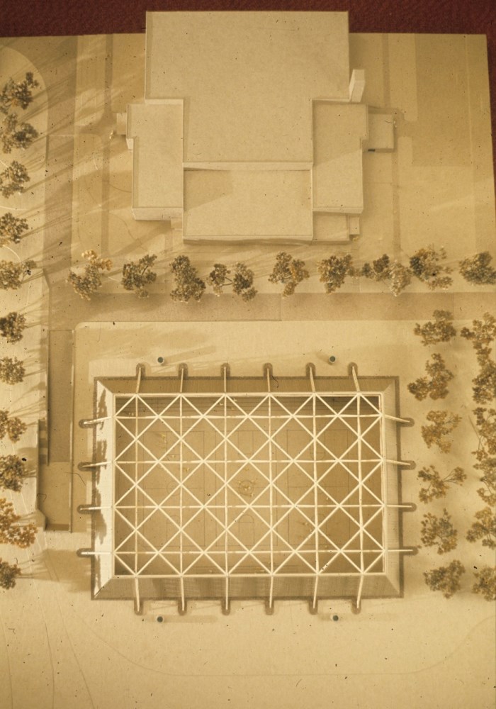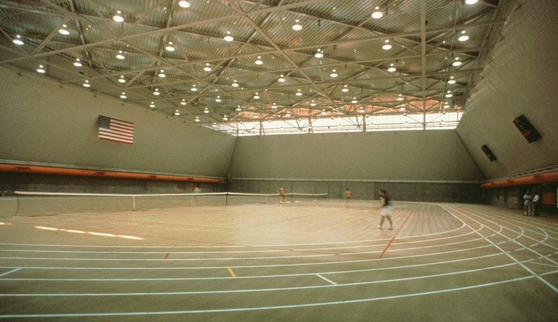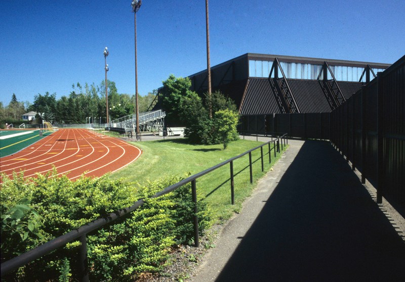 The Design of this fieldhouse on the Duluth Campus responds to the objective established by the University for the project: the building is to blend with adjacent Campus buildings; it must connect to an existing physical education building to allow circulation and to share rooms; and its structural system must be economical while accommodating the long span (200 ft) required to contain a 1/10 mile running track and play courts with 40' clear height.