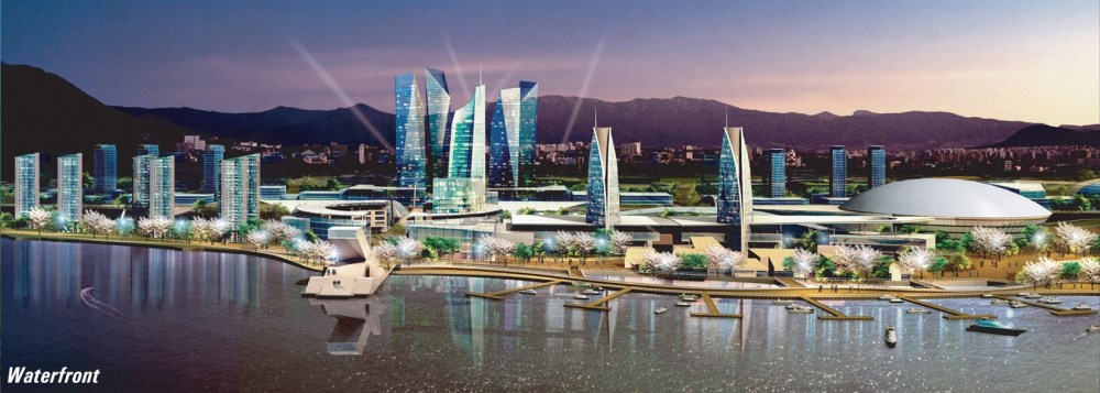 Rising above and along the waterfront in Chuncheon, Korea, this urban master plan is designed to create a central strategic and tourist hub for this region of Korea. Two communities - Lakeside Village and Canal City (each a mix of low buildings and high rises) will be connected by a hub, the Gateway Center, that will also serve as a commercial and transportation center. The development will also encompass two environmentally-friendly attractions, Exploration Island and Ecology Park.