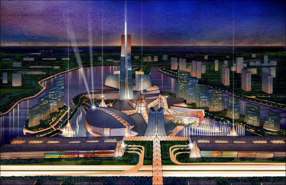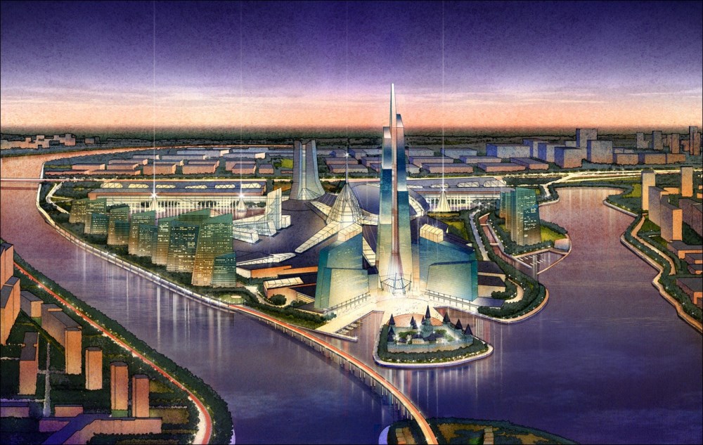 Located on 100 hectares of waterfront land in the heart of Moscow 7 kilometers from the Kremlin the Moscow Nagatino Center is the most significant urban development in this city in many years. The city has commissioned an architectural concept, feasibility study, and business plan to accommodate multiple uses for space that totals over 2 million square meters. The 300 meter tower in the center is a landmark building.