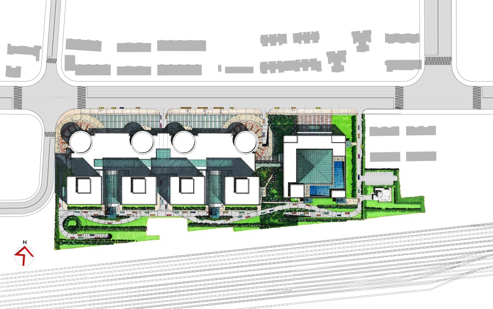 This beautiful development is a mixed-use complex incorporating four office towers, a 6-story community center, and a 12-story department store and hotel combination. There is below grade parking and a hyper-market for visitors' convenience. This complex represents the first part of a large-scale area development.