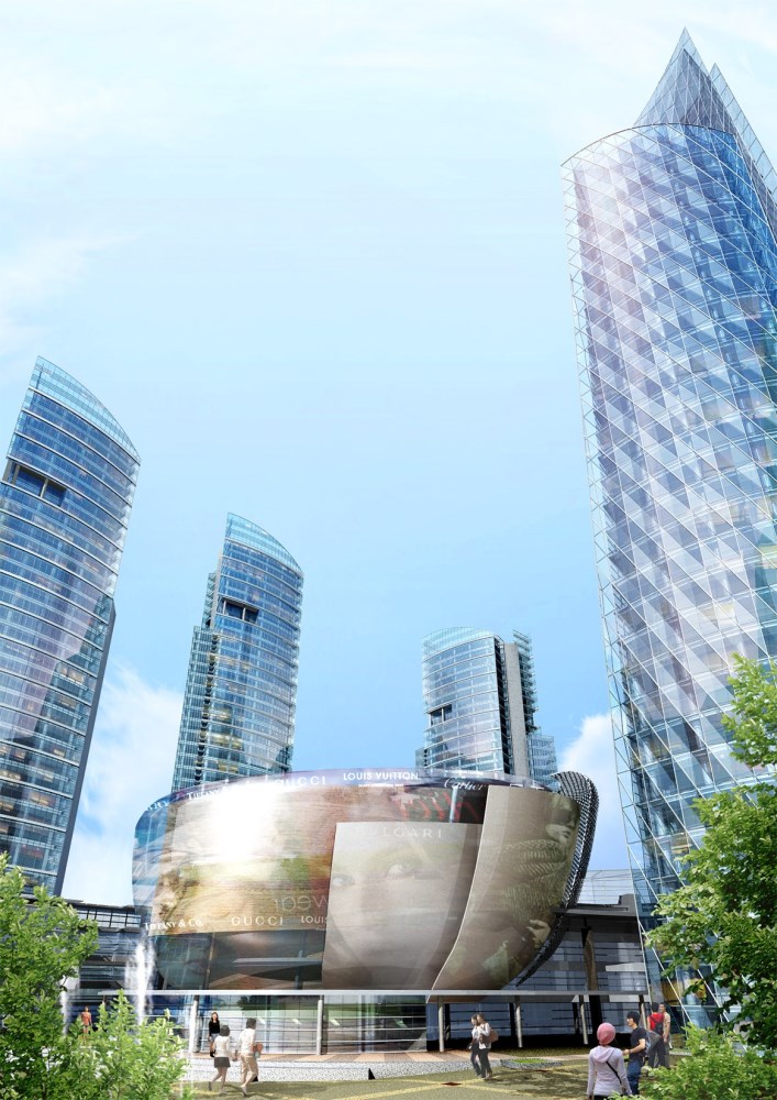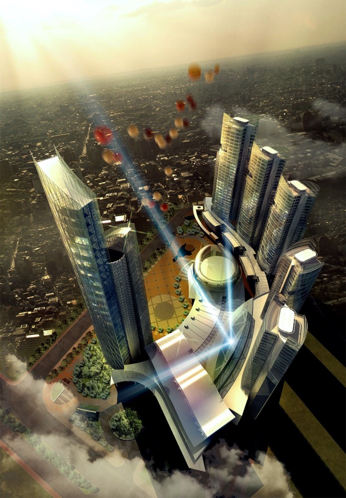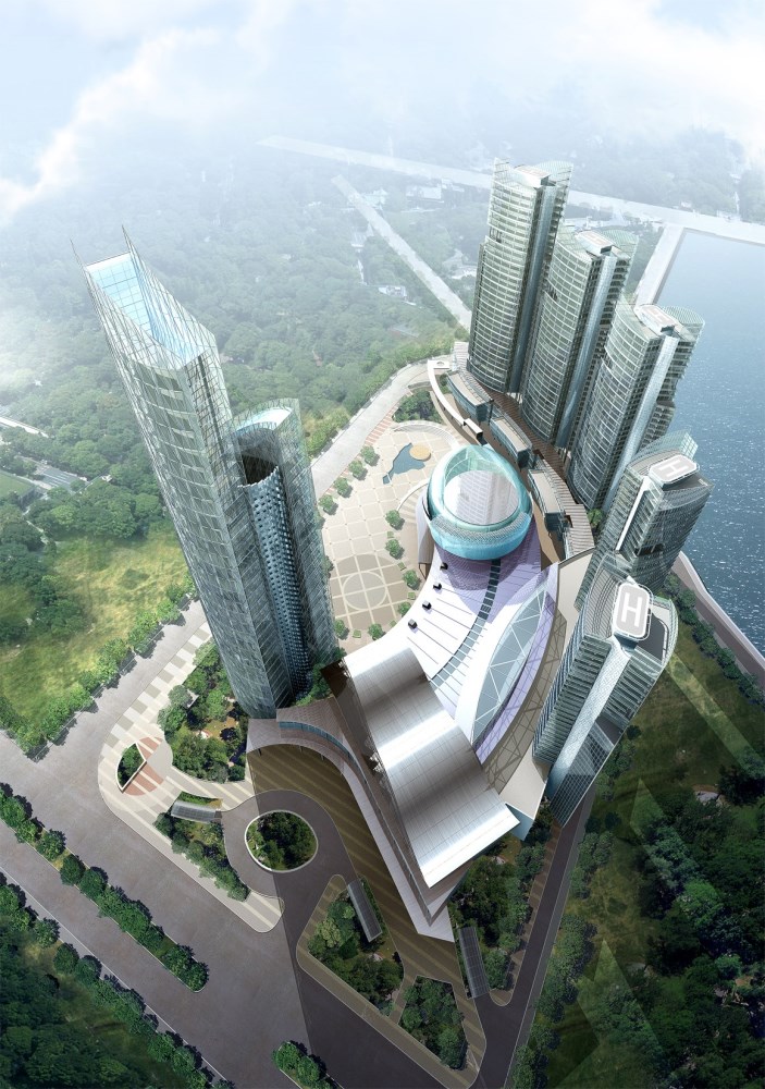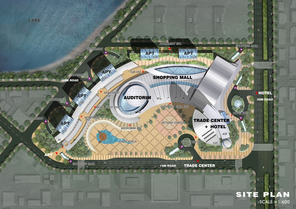 Located in the center of Hanoi, Vietnam, this substantial and spectacular complex has transformed the city. It consists of five distinct but compatible 45-story residential towers and one dominating 60-story Trade Center tower that houses offices and retail, an exhibition hall, a hotel, managed stay condominiums, and underground parking.