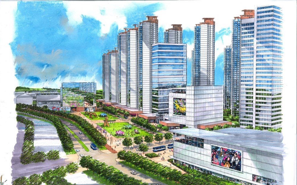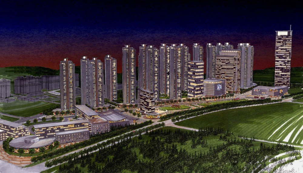 This "collection" of 45-story buildings is almost a community unto itself, providing a significant addition to the housing available in Cheongju, Korea. The towers are positioned to take maximum advantage of natural light. They are grouped in a park-like setting that unites them with gracious and carefully planned landscaping and a series of interesting pedestrian paths.
