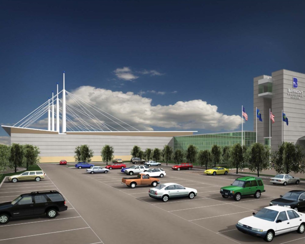 The spectacular Bayfront Convention Center in Erie, Pennsylvania sits directly on the city's beautiful waterfront and has become a focal point and source of civic pride for the city. It has a soaring, open, and - appropriately - almost nautical feel to it. The approach to the Center is dominated by a tower and skybridge that connects the exhibition halls with a hotel and offers dramatic views of the lake on one side and the harbor on the other.