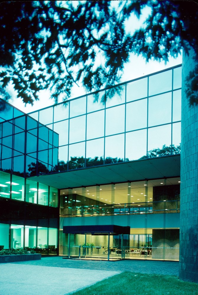 The corporate headquarters for GE Capital is a complex of straightforward glass buildings which, while simple in appearance, were carefully designed and sited to take full advantage of 31 acres of beautiful forest, wetland, meadow, and lake - right in the midst of suburban Eden Prairie, Minnesota. These simple buildings not only reflect and preserve their natural setting, but respect it as well with a host of eco-friendly and energy efficient features, including earth insulated terraces, heat recovery and thermal storage systems.